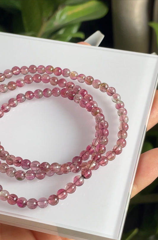 pink tourmaline 3 wraps bracelet 4.5mm