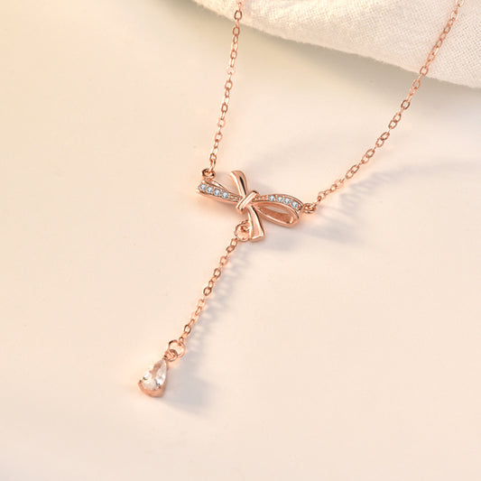 s925 sterling silver bow tassel necklace pendants
