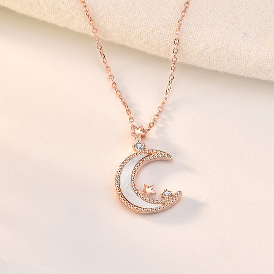 White shell S925 Sterling Silver Star and Moon Necklace